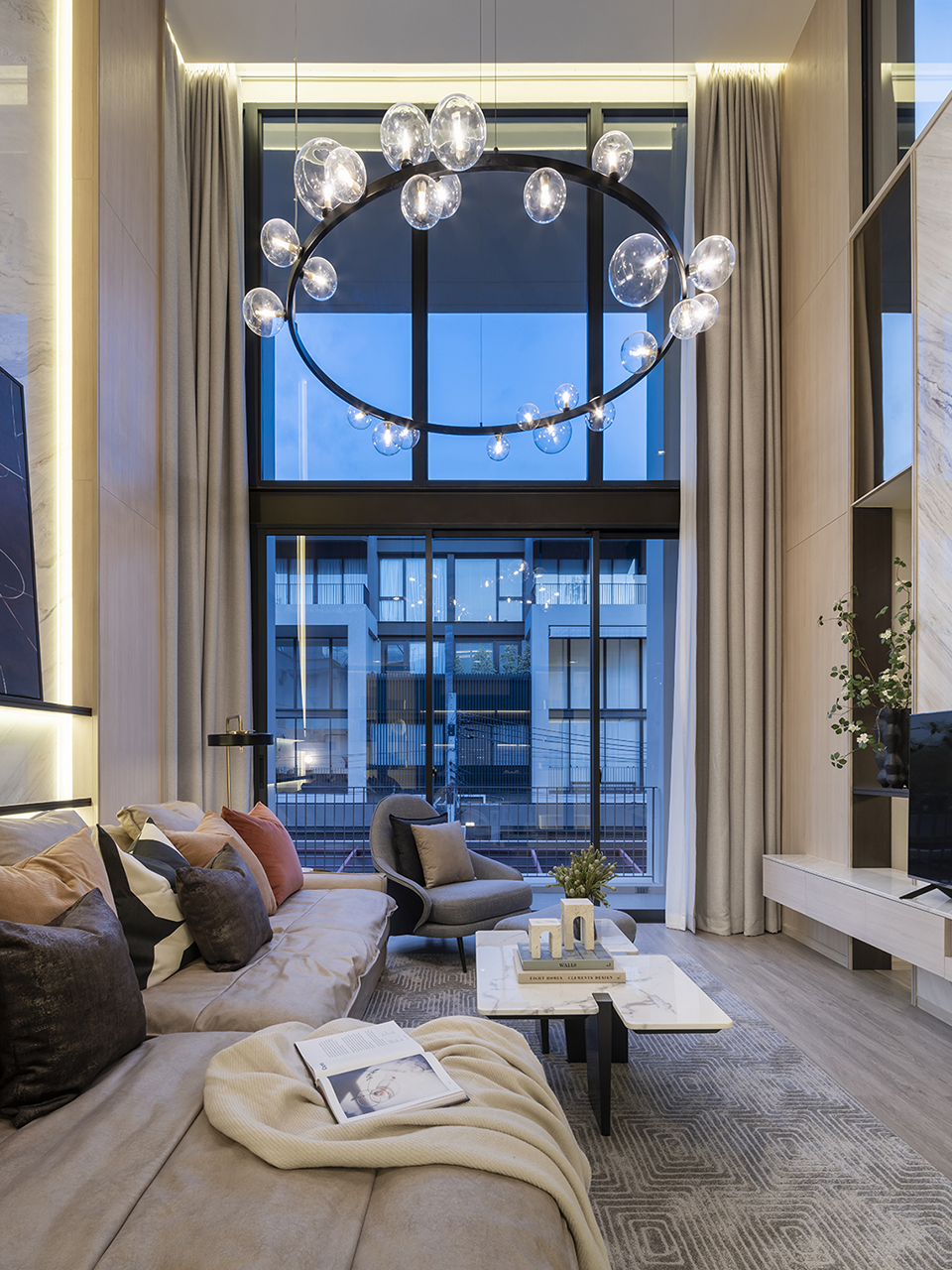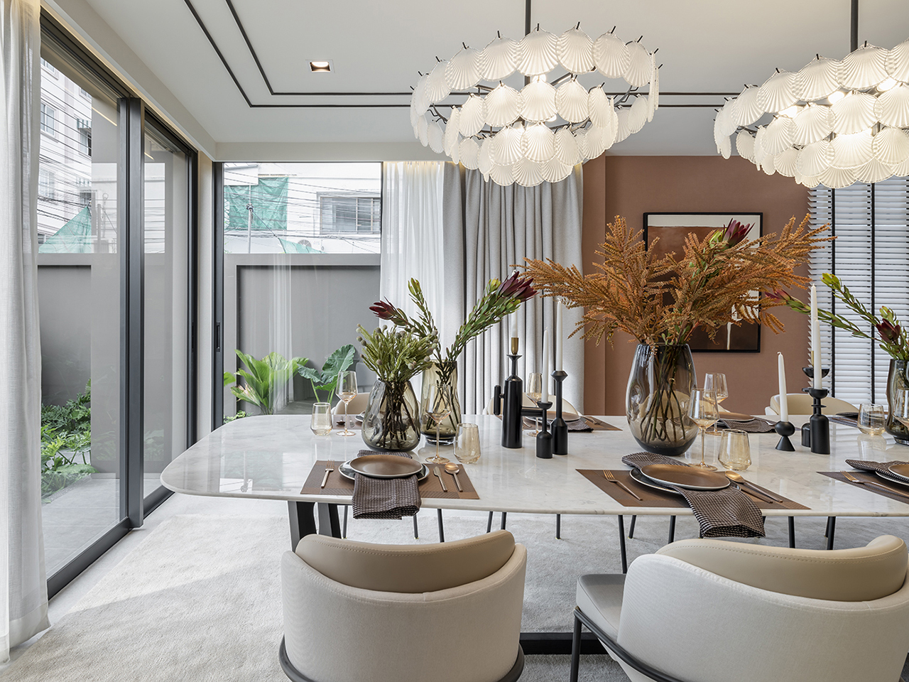 This exclusive enclave of just 18 residences blends single and twin-house typologies into a seamless contemporary minimalistic statement. The architecture prioritizes clean lines and restraint, utilizing a monochromatic palette to create a canvas for sophisticated living. At the heart of each home is a dramatic double-height living room, offering an impressive sense of volume and light. The layout features a seamless panoramic connection between the formal dining area and a grand backyard, dissolving the boundary between indoor luxury and outdoor serenity. Every space is designed on a grand scale, ensuring that the minimalism feels expansive rather than empty.