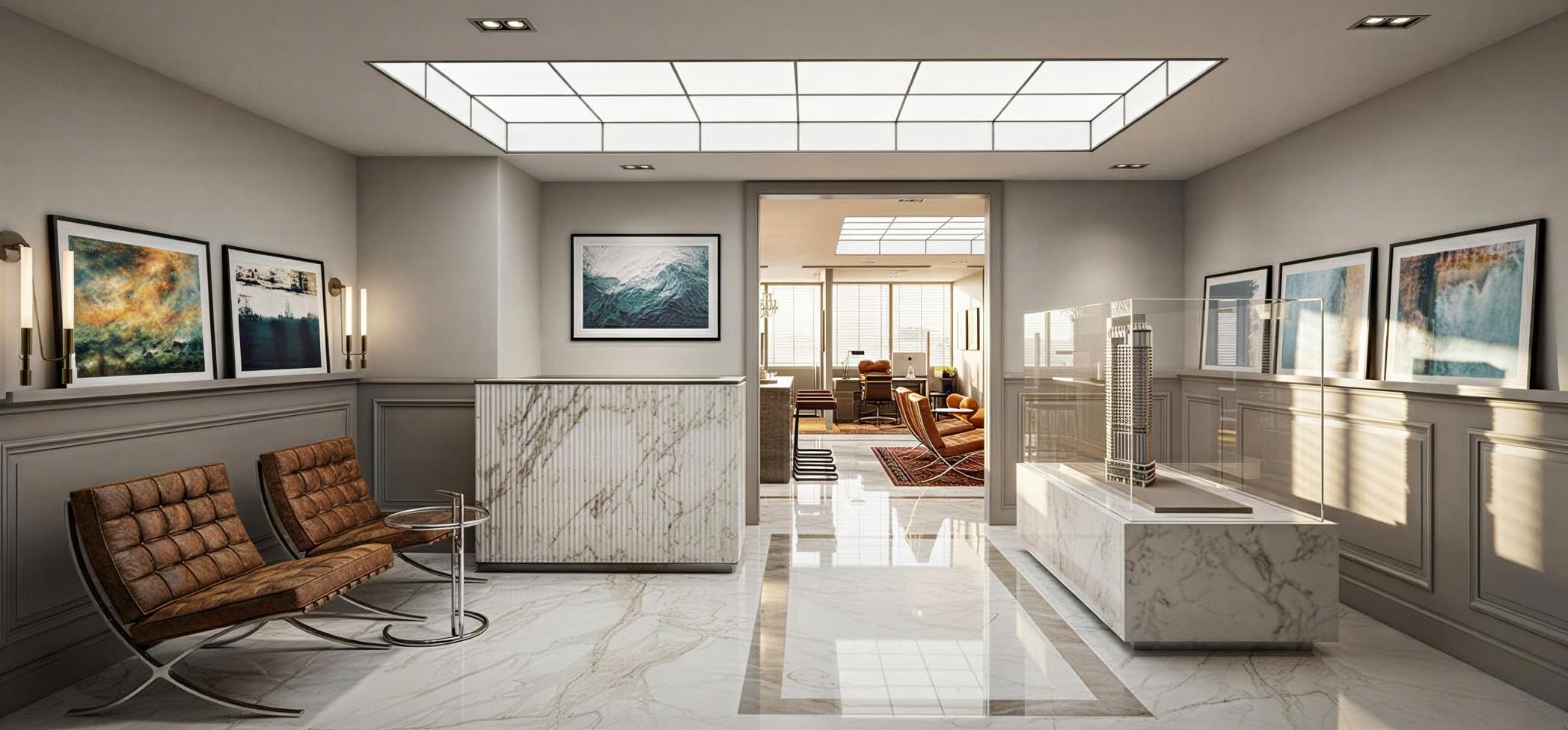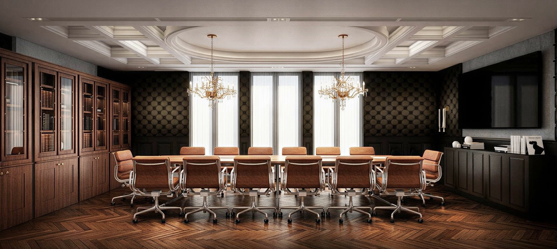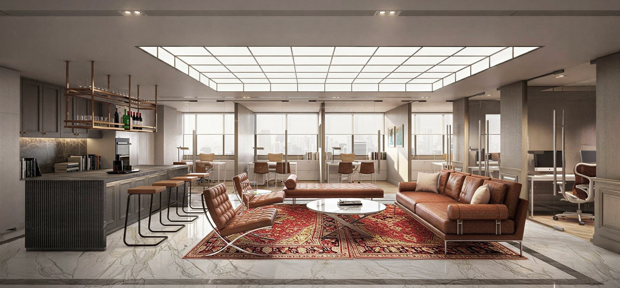 This 500 sq.m. boutique office is a sophisticated intersection of historical grandeur and sharp modernism. The architectural shell is purely Neo-Classical, featuring soaring ceilings, intricate plaster cornices, and stately wall moldings. To overcome the lack of natural exposure, a massive artificial skylight serves as the central focal point, utilizing advanced LED technology to mimic the shifting color temperature of a natural day. Contrasting this ornate backdrop is a curated collection of Modernist furniture—think sleek steel-framed desks and iconic mid-century seating. The space functions as a living museum, with Renaissance oil paintings curated across the walls, creating a "scholarly-chic" atmosphere. This bold juxtaposition of 15th-century art, 18th-century architecture, and 20th-century furniture defines a workspace that is both timeless and cutting-edge.