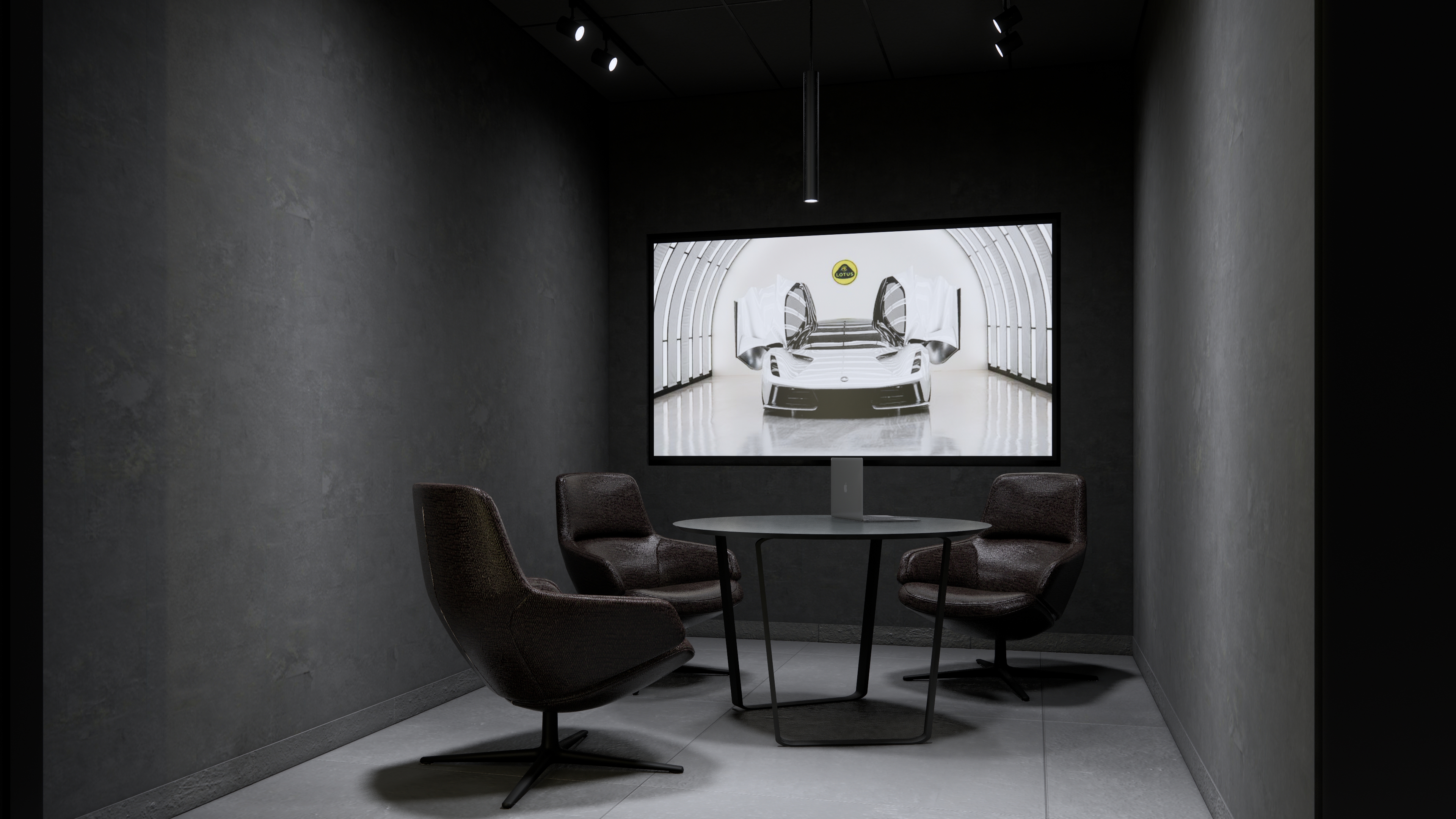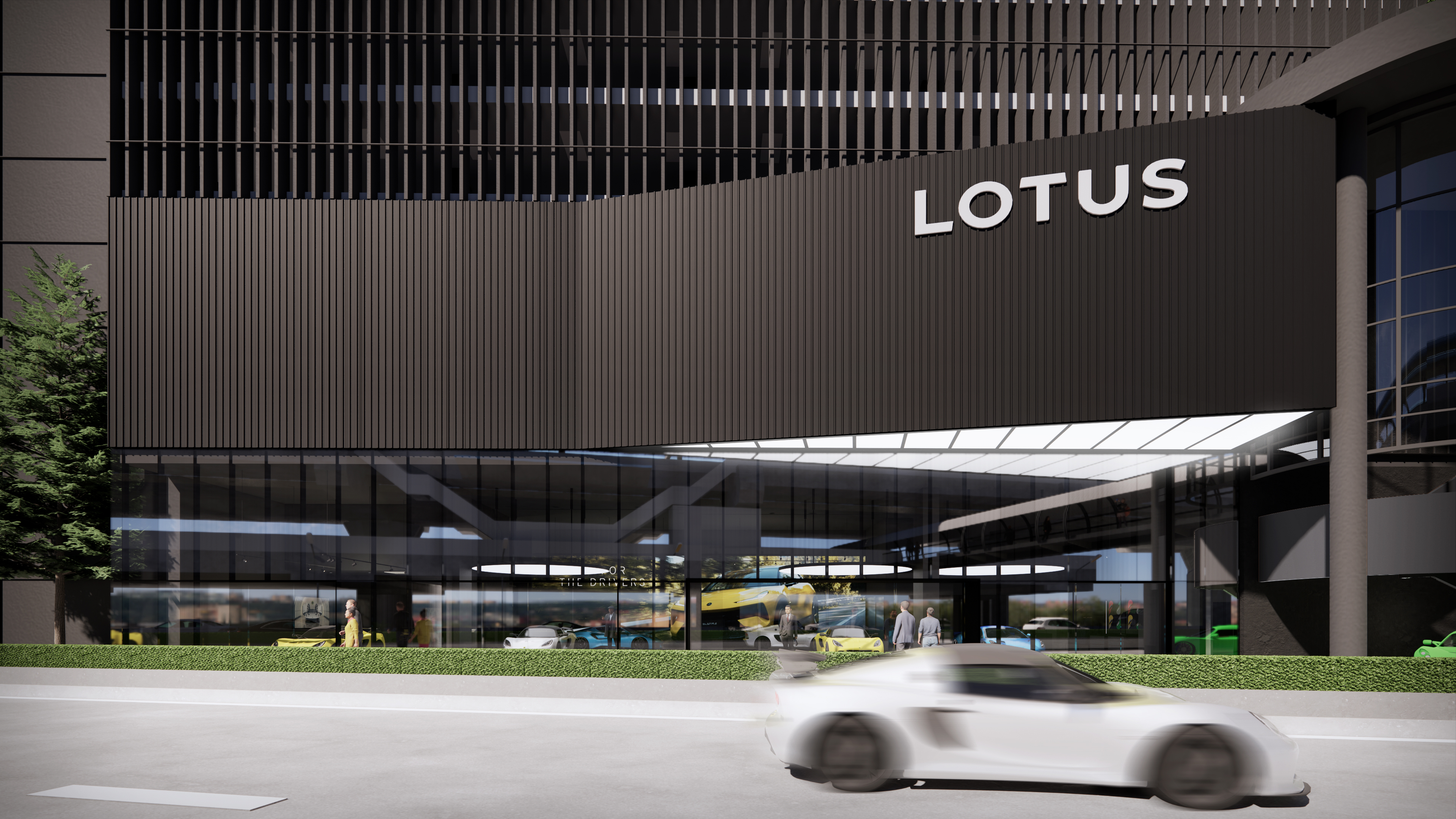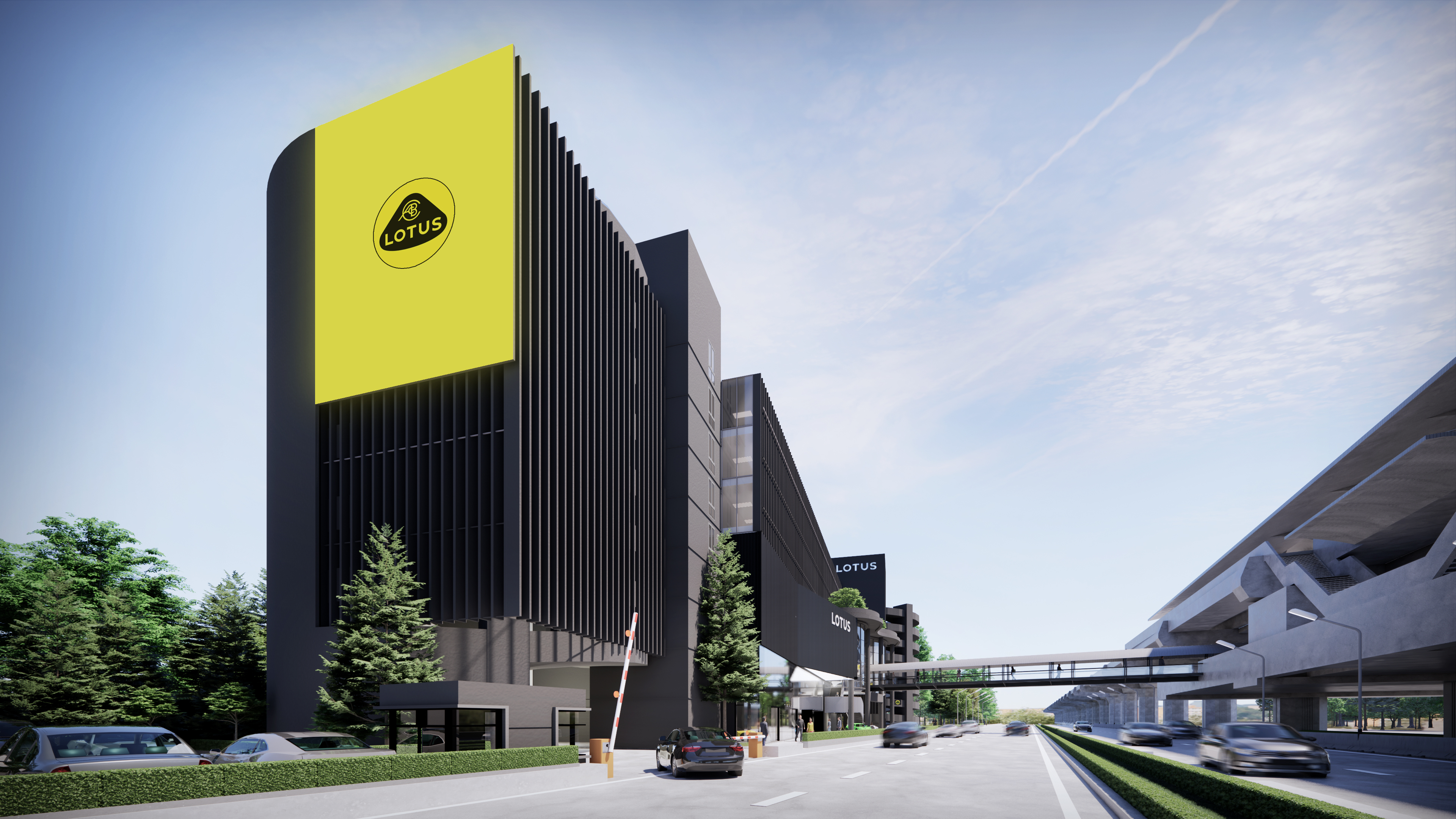 The Lotus Supercar Showroom and Service Center is a temple of aerodynamic speed, designed with a monolithic, black-glazed exterior. The minimalist architecture acts as a dark prism, featuring expansive smoked-glass facades that provide a tantalizing glimpse into the high-octane world within. By stripping away all visual noise, the structure embodies the Lotus philosophy of "lightness," using a midnight palette to create a sense of mystery and gravitational pull. Inside, the atmosphere is electric. Dramatic interior light panels and recessed LED arrays carve through the shadows, illuminating each supercar as a high-performance sculpture. These light "veins" emphasize the carbon-fiber curves and precision engineering of the vehicles, transforming the showroom into a dark gallery where the cars are the sole protagonists. It is a space defined by speed, shadows, and the stark beauty of illuminated power.