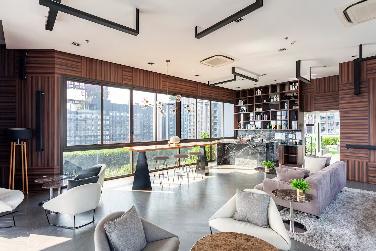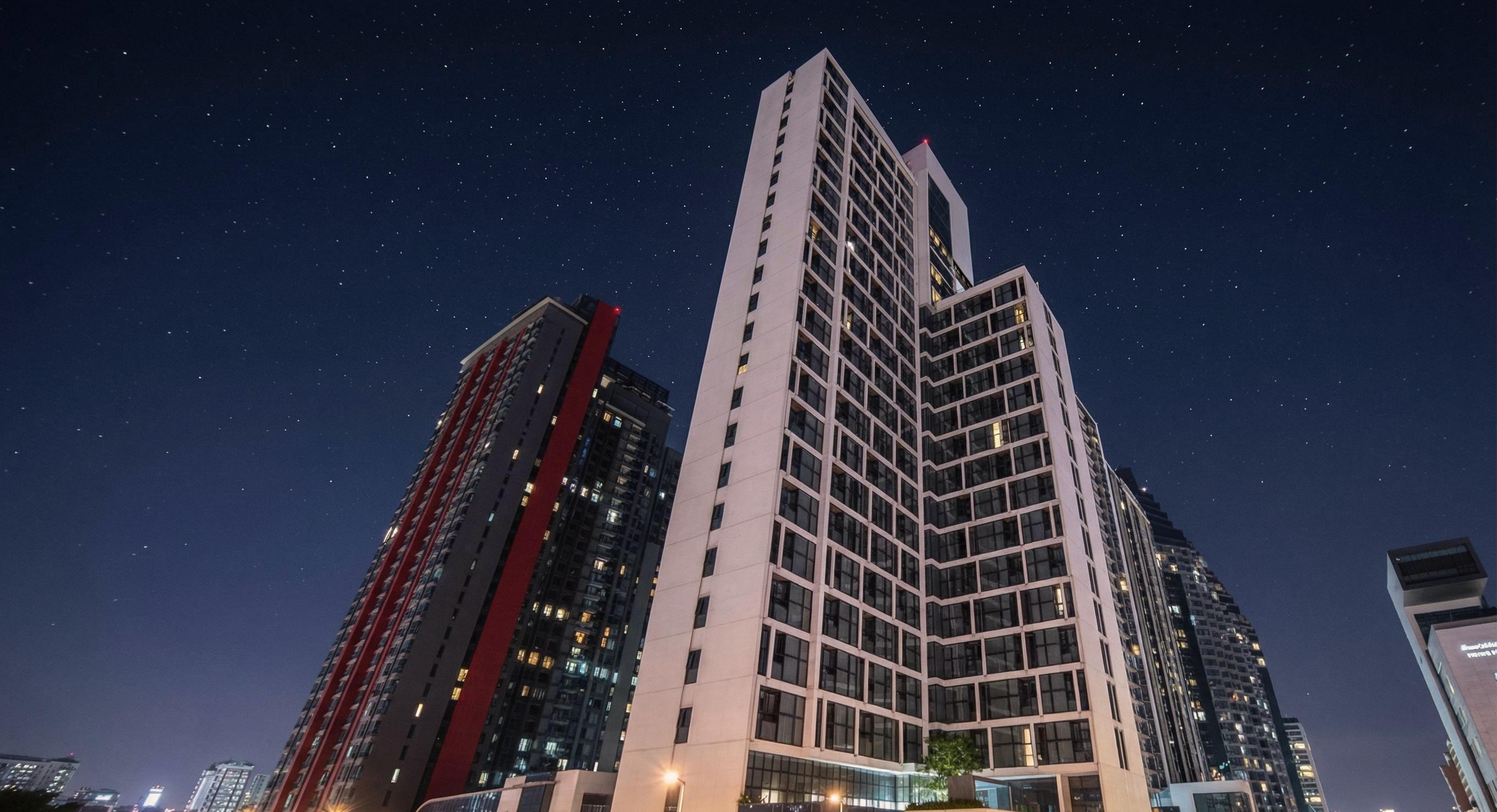 This 23,000 sq.m. development redefines vertical living as an all-duplex condominium, pioneering the inclusion of mini-lofts in every unit. By implementing a "super-bunkbed" concept, the interiors utilize vertical functional zoning to distinctly separate living and sleeping areas within a cohesive volume. The architectural layout employs strategic L-shaped planning, ensuring that bedroom sections are offset to prevent direct sightlines between units, thereby guaranteeing exceptional privacy. Situated adjacent to an expressway, the project leverages the vast visual clearance to orient facilities toward breathtaking skyscraper views, transforming the site's open boundaries into a panoramic urban experience.