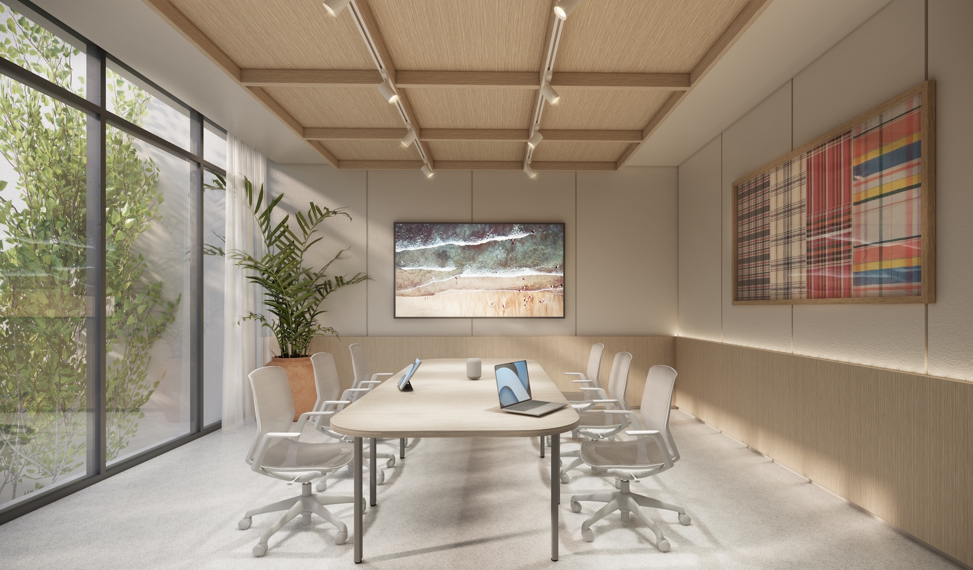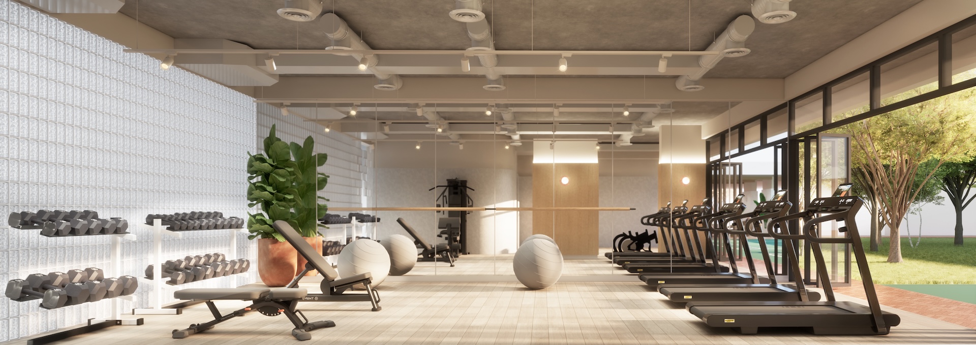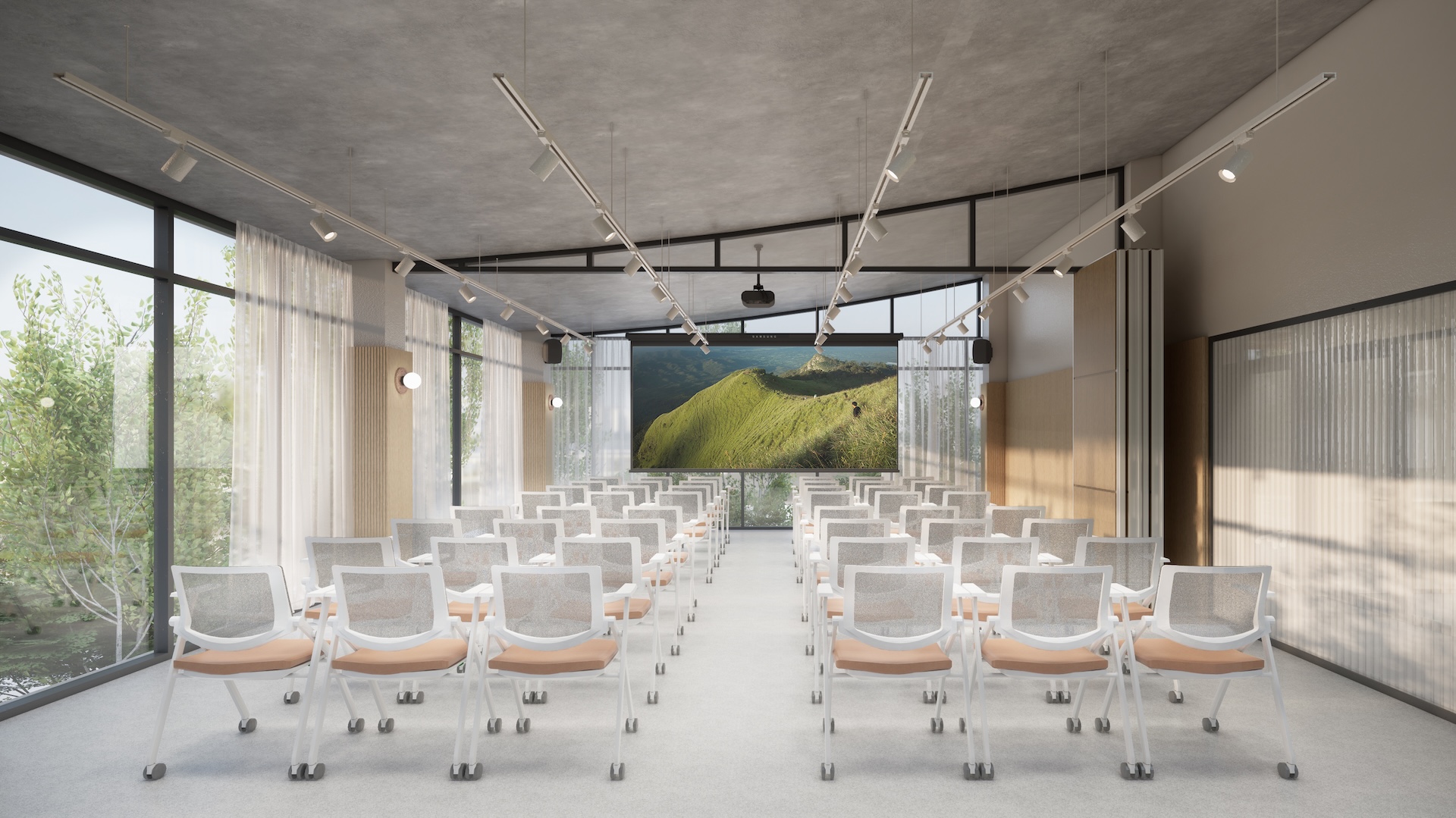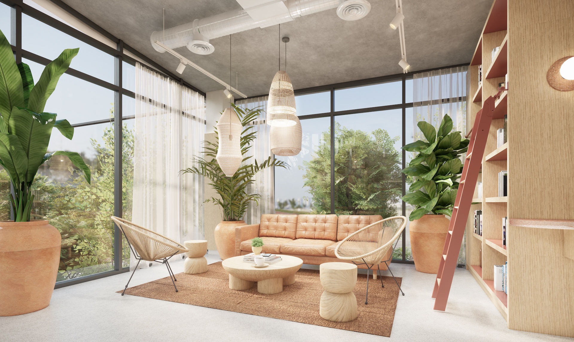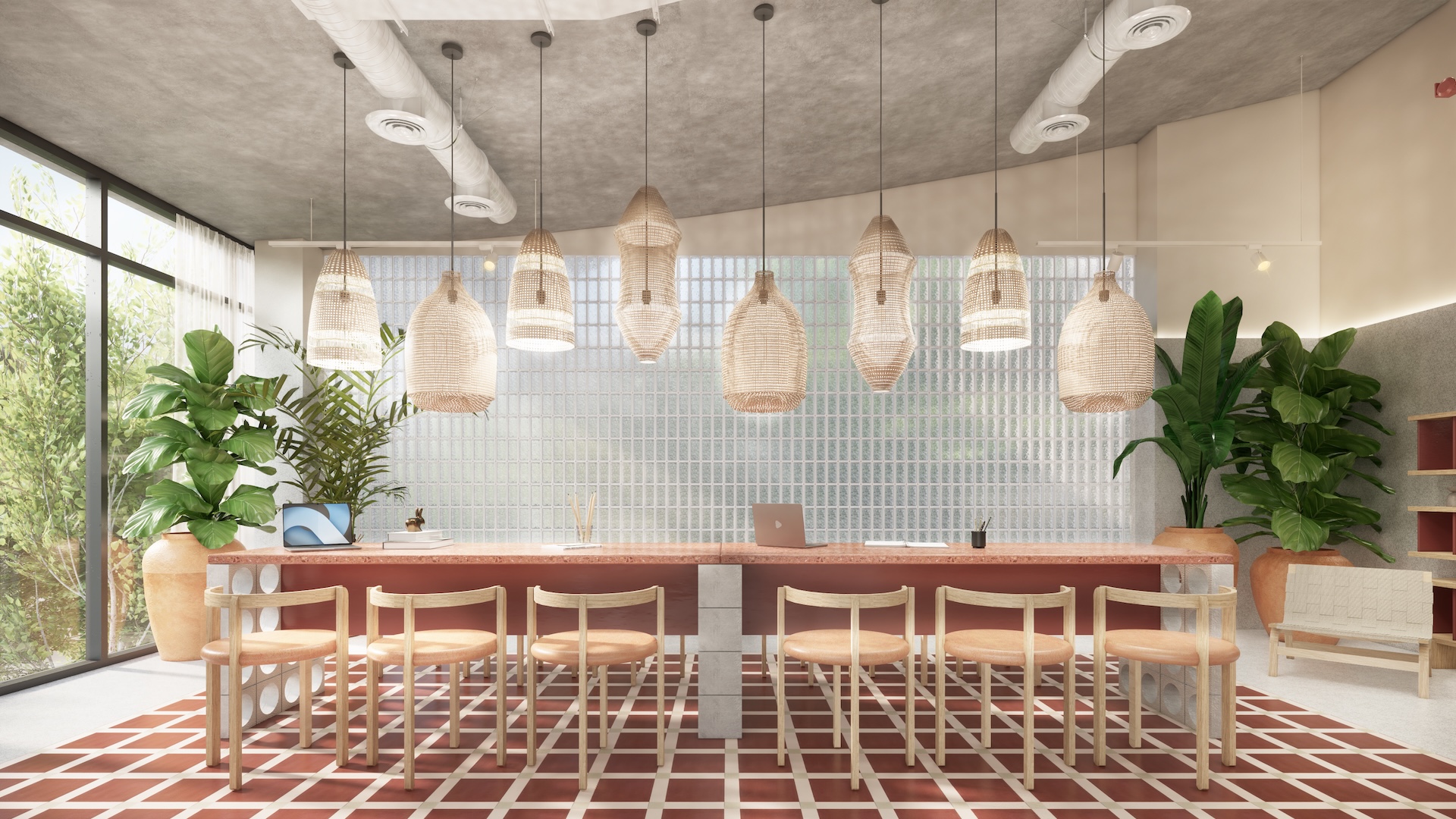 This multi-residential condominium is a poetic reimagining of Brutalism, where raw, monolithic concrete volumes are softened by a delicate pastel-toned finish. The architecture’s "heavy" geometry is neutralized by a palette of dusty rose and pale sage, creating a "soft-tectonic" aesthetic. The interiors embrace Minimalist Mid-Century styling—clean-lined walnut furniture and tapered silhouettes—to maintain a sense of airy sophistication within the rugged structure. True to its soul, the project integrates biophilic design, with cascading flora that spills over concrete balconies like "living lace." A unique cultural anchor is the usage of the Thai Tartan (Pha Khao Ma) pattern; this traditional weave is reimagined as oversized, minimalist art installations and textile partitions, adding a vibrant, rhythmic soul to the common areas. It is a space where industrial honesty, retro grace, and Thai heritage converge in a lush, chromatic sanctuary.